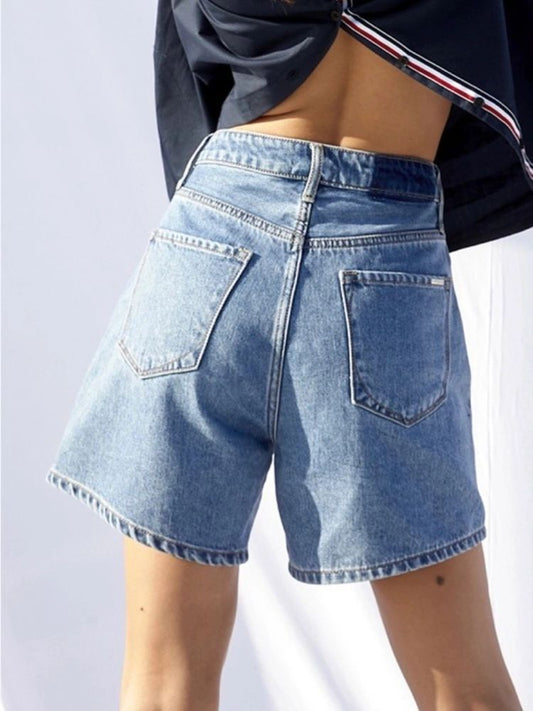 light washed high rise denim shorts