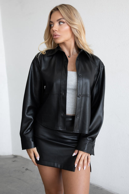 Crop stitched leather jacket