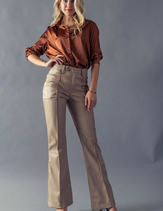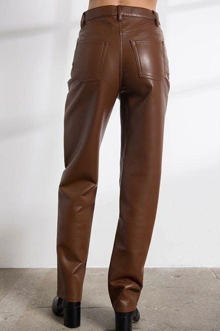 straight legged high waisted leather pants